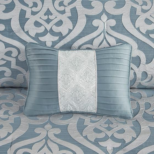 8 Piece Jacquard Comforter Set, Aqua, 90x90x1.5