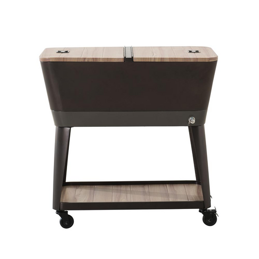 80-Quart Wood Grain Metal Rolling Ice Chest Cooler Cart with Storage Shelf