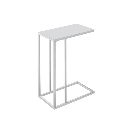 ACCENT TABLE - WHITE METAL WITH FROSTED TEMPERED GLASS