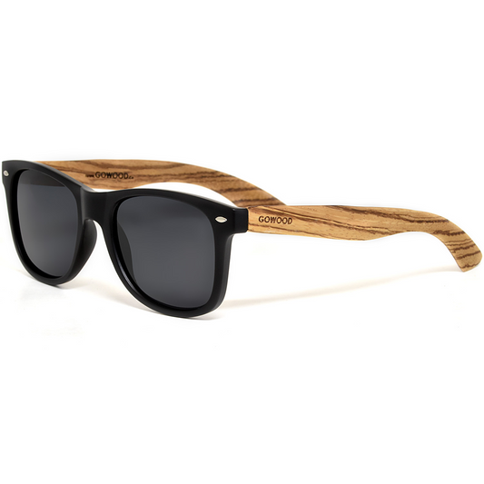 Zebra wood classic style sunglasses with black polarized lenses