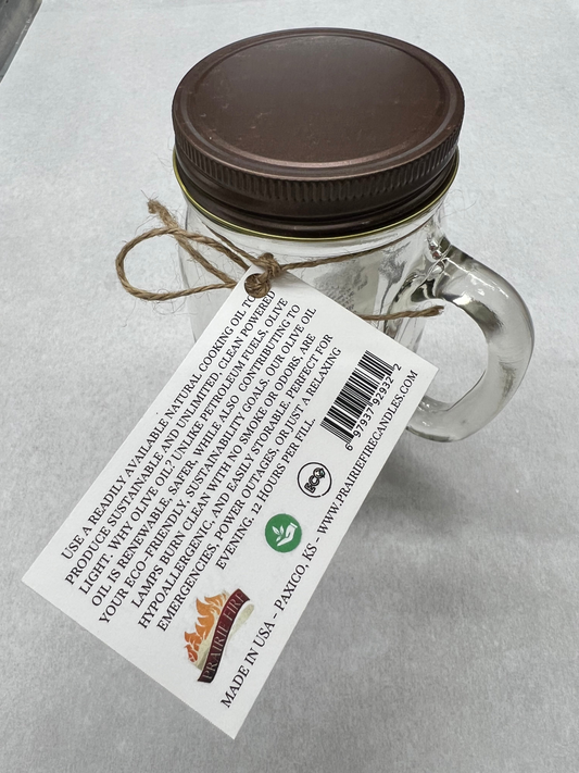 Olive Oil Candle Lamp - Handle Mason Jar - Emergency Backup - Power Outage