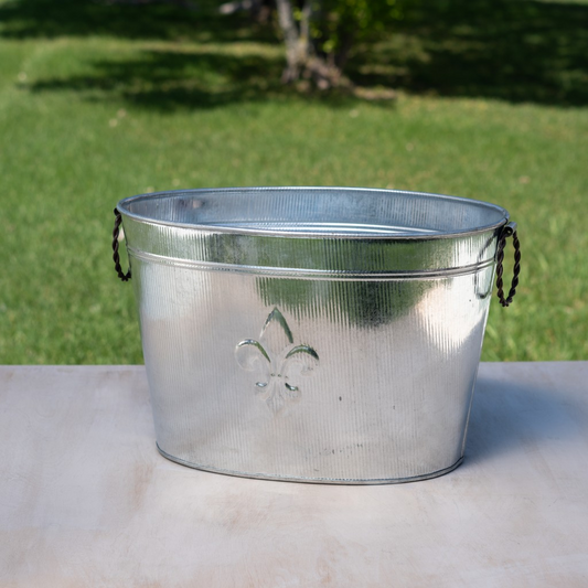 Oval Silver Ribbed Fleur De Lis Beverage Tub