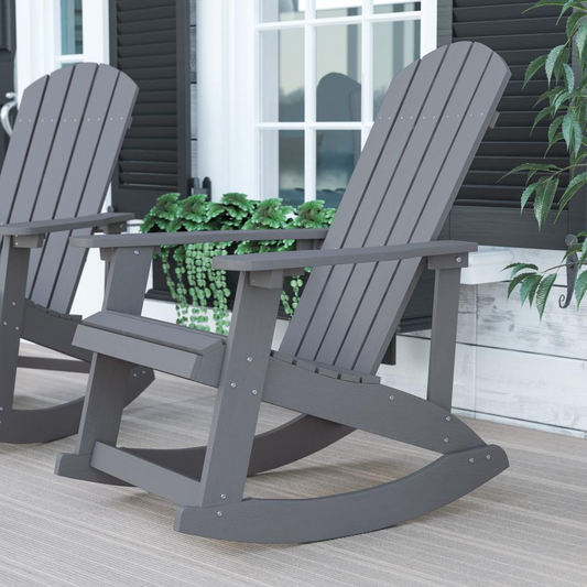 Savannah All-Weather Poly Resin Wood Adirondack Rocking Chair with Rust Resistant Stainless Steel Hardware in Gray