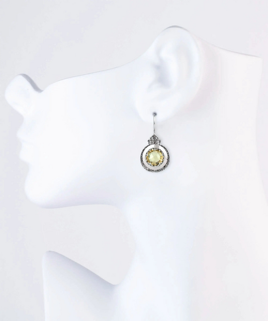 Sterling Silver Filigree Art Citrine Gemstone Women Drop Earrings
