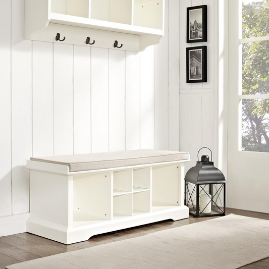 Brennan Storage Bench White/Tan - Bench, 2 Wicker Basekets