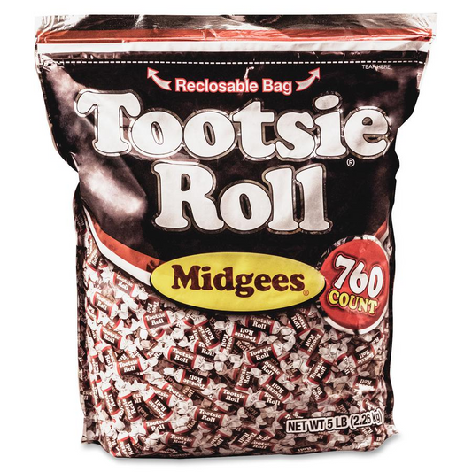 Tootsie Roll Midgees Candy - Assorted - Individually Wrapped, Resealable Container - 5 lb - 1 Bag - 760 Per Bag
