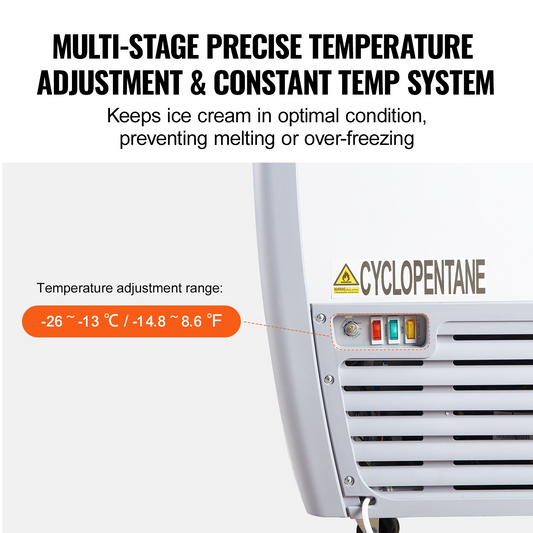 VEVOR Commercial Ice Cream Display Case, 13.1 Cu.ft Chest Freezer, Mobile Glass Top Deep Freezer, Restaurant Gelato Dipping Cabinet with 8 Large Tubs, 2 Sliding Glass Doors, Locking Casters, White