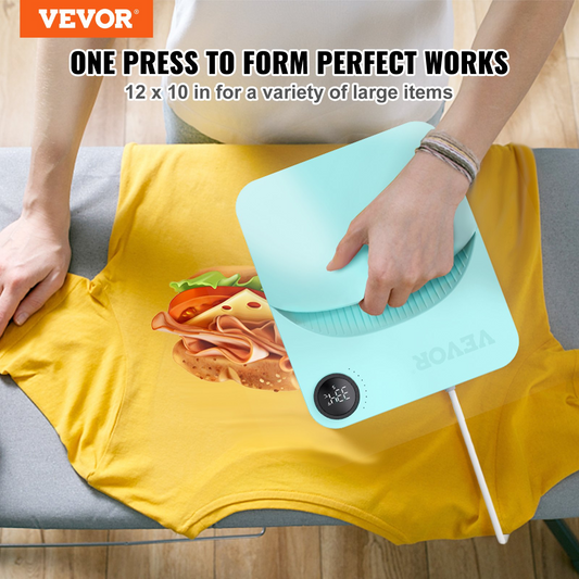 VEVOR Heat Press Machine,10x12inches Portable Shirt Printing Multifunctional Sublimation Transfer Heat Press Machine Teflon Coated, Easy Iron-on Press for T-shirts/Bags/Pillows/HTV Vinyl Projects