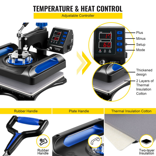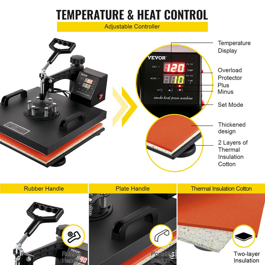 VEVOR Heat Press Machine 15x15Inch 8pcs 1050W Combo Digital Multifunctional Sublimation Heat Transfer Machine Dual LED Display for T Shirts Hat Mug Cap Plate Swing Away Design