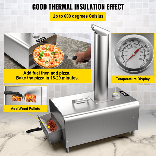 VEVOR Outdoor Pizza Oven 12",Wood Fired Oven with Feeding Port,Wood Pellet Burning Pizza Maker Ovens 932℉Max Temperature Stainless Steel Portable Pizza Ovens with Accessories for Outdoor Cooking.