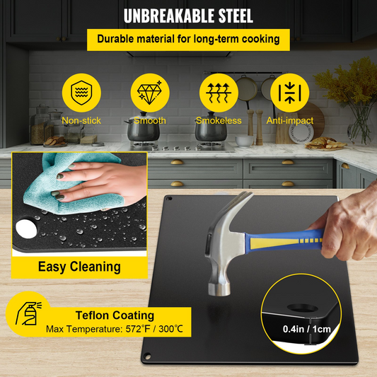 VEVOR Steel Pizza Stone for Oven, Steel Pizza Plate, A36 Steel Baking Steel Pizza Stone for Grill, Steel Pizza Pan with 20x Higher Conductivity for Pizza & Bread Indoor & Outdoor (Balck)