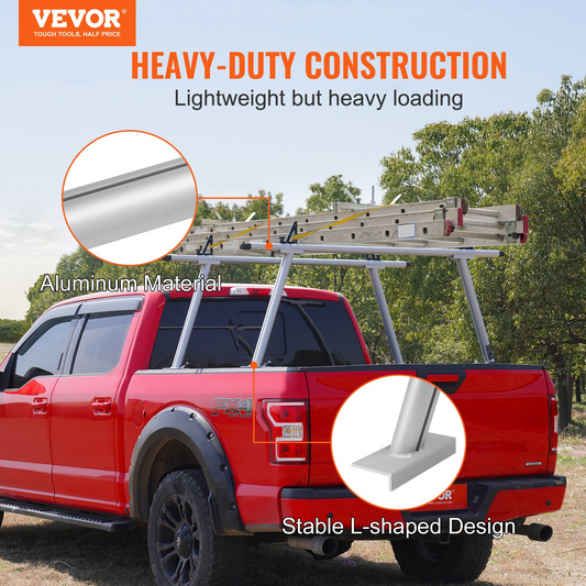 VEVOR Truck Rack, 800 lbs Capacity, 71"x31" Aluminum Ladder Rack for Truck with 8 Non-Drilling C-clamps, Heavy Duty Truck Bed Rack Two-Bar Set for Kayak, Surfboard, Lumber, Ladder