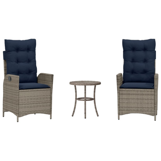 vidaXL 3 Piece Bistro Set with Cushions Gray Poly Rattan
