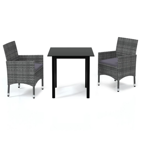 vidaXL 3 Piece Patio Dining Set Poly Rattan Gray