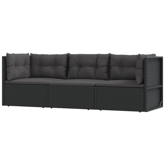 vidaXL 3 Piece Patio Lounge Set with Cushions Black Poly Rattan