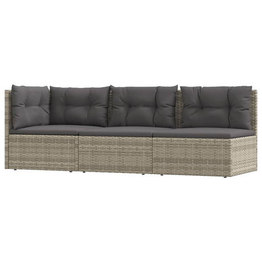 vidaXL 3 Piece Patio Lounge Set with Cushions Gray Poly Rattan