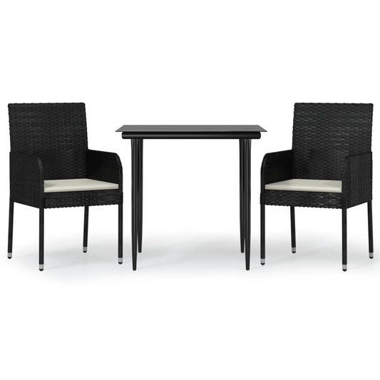 vidaXL 3 Piece Patio Dining Set with Cushions Black Poly Rattan