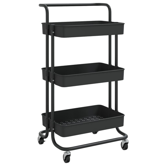 vidaXL 3-Tier Kitchen Trolley Black 18.1"x10.2"x25.2" Iron
