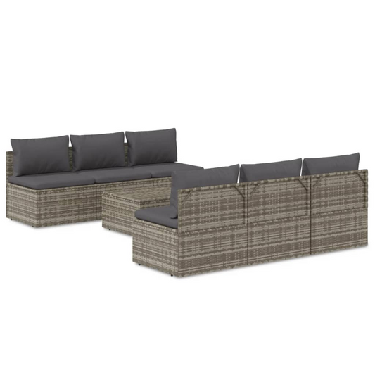vidaXL 7 Piece Patio Lounge Set with Cushions Poly Rattan Gray
