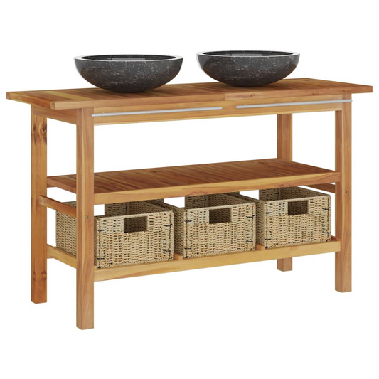 vidaXL Bathroom Vanity Cabinet with Black Marble Sinks Solid Wood Teak