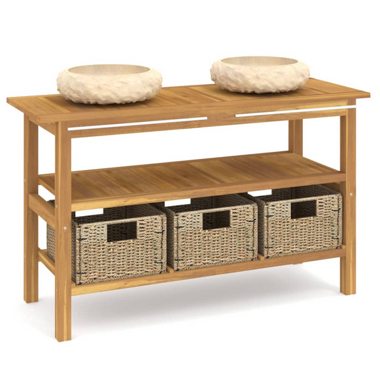 vidaXL Bathroom Vanity Cabinet with Cream Marble Sinks Solid Wood Teak