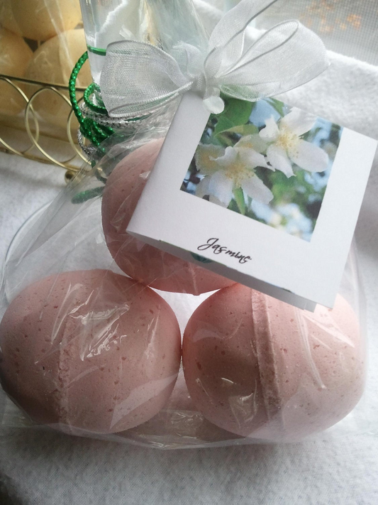 14 bath bombs in Jasmine fragrance with shea & cocoa butter, gift bag bath fizzies, great for dry skin with 7 ultra rich oils