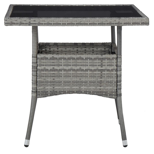 vidaXL Patio Dining Table Gray Poly Rattan and Glass