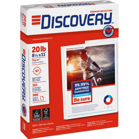 Discovery 3HP Premium Multipurpose Paper - Anti-Jam - Ultra White - 97 Brightness - Letter - 8 1/2" x 11" - 20 lb Basis Weight - 2500 / Carton - Excellent Ink Absorption