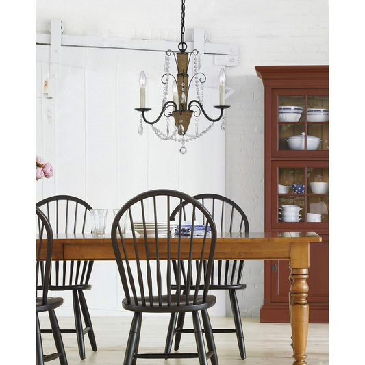 24.25" Inch Tall Metal and Cyrstal Chandelier in Rattan and Crystal Finish