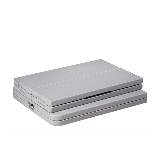 29''W x 57''L Trapezoid Grey Thermal Laminate Activity Table - Height Adjustable Short Legs