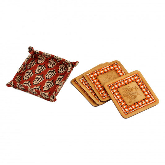 Hand Embroidered Tea Coaster 4 Pc Set (Brown)