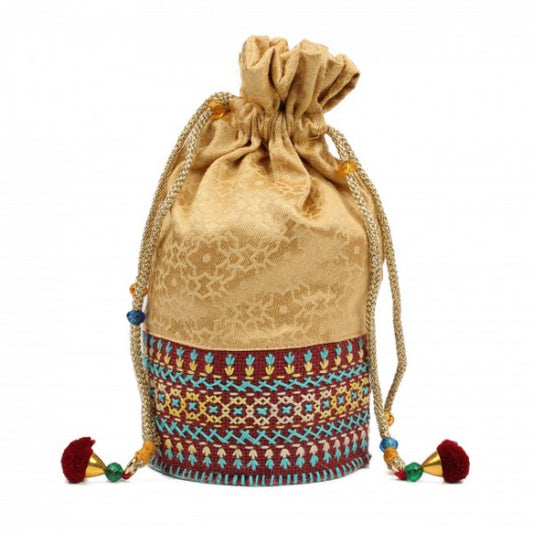 Multicolor Tree Patchwork String Potli Bag