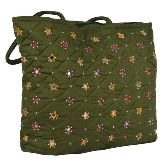 Handmade Banjara Mirror Beads Shoulder Bag for Women Mehndi