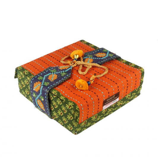 Handmade Orange Jute 4 Compartment Gift Box