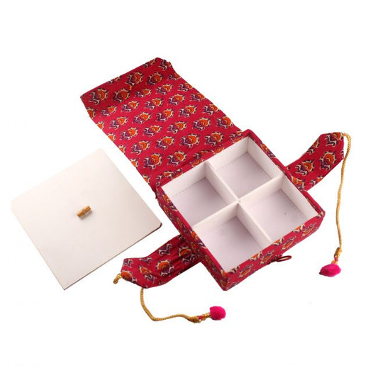 Handmade Red Jute 4 Compartment Gift Box