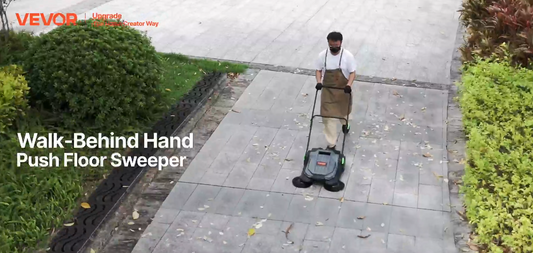 Walk-behind Hand Push Floor Sweeper, 25.6" Sweeping Width Floor Sweeper Manual Non-Electric, 5-Gallon Waste Container, Angle & Height Adjustable Folding Handle for Walkway, Yard, Garage, Patio
