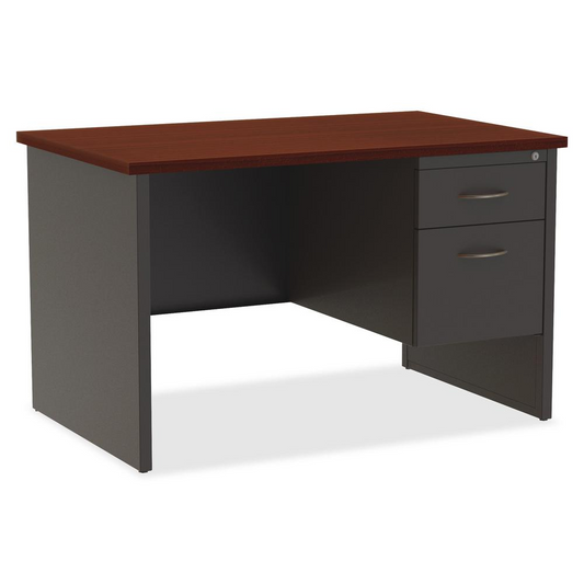 Lorell Mahogany Laminate/Charcoal Modular Desk Series Pedestal Desk - 2-Drawer - 48" x 30" , 1.1" Top - 2 x Box, File Drawer(s) - Single Pedestal on Right Side - Material: Steel - Finish: Mahogany Lam