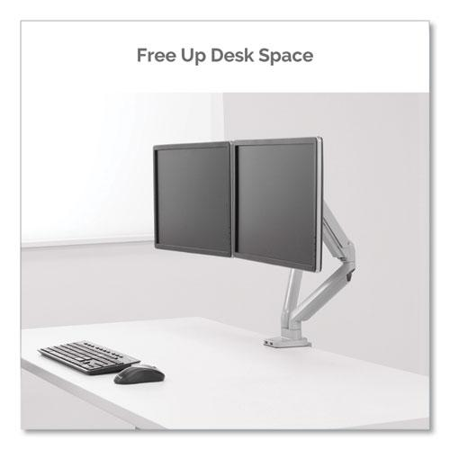 Platinum Series Dual Monitor Arm, For 27" Monitors, 360 deg Rotation, 45 deg Tilt, 180 deg Pan, Silver, Supports 20 lb