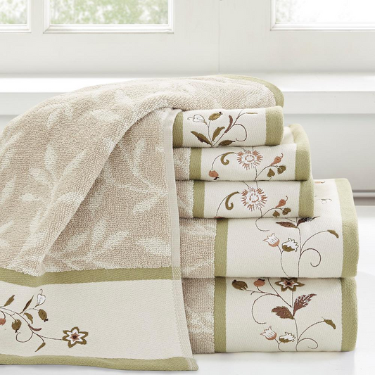 Embroidered Cotton Jacquard 6 Piece Towel Set