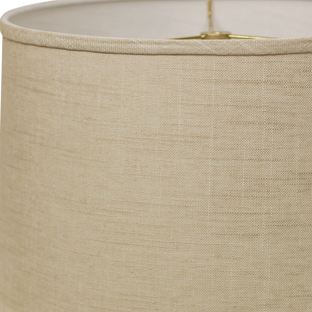 This Light Wheat Throwback Drum Linen Lampshade has a hint of mid-century modern flair and will be a great addition to your lamp base. This hardback lampshade includes a standard washer fitter that fits over a standard harp and can be used with your existing finial design. This high quality crafted drum shape has a slight slant to give it some visual interest and is crafted of the finest linen innsbruk cotton with a fold on top and bottom of the shade. 10" x 14" x 14"