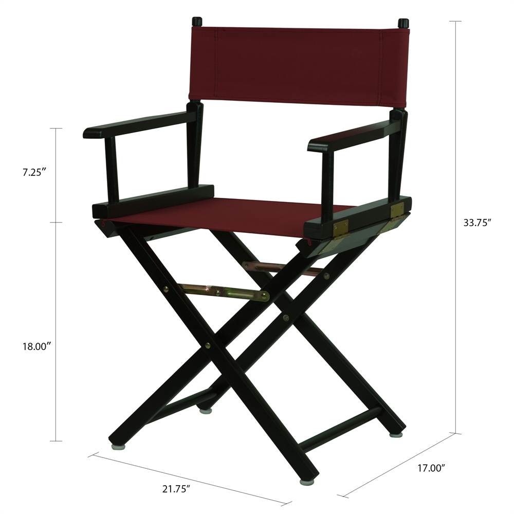 Discover a variety of uses for this classic-style director's chair. This portable director’s chair folds up and out easily, so you can move it from room to room or transport it for special occasions. It is an excellent solution for home and businesse Made of Solid Wood The chair can be folded in half for easy transport and storage, and provides great permanent and temporary seating for trade shows, outdoor events or any room in the house No assembly required, just fit in the cover and done! Dimension: 20¾"x16"x32"H, Seat-height appox. 18", Back cover size: 20"x6", Seat cover size: 18"x16"
