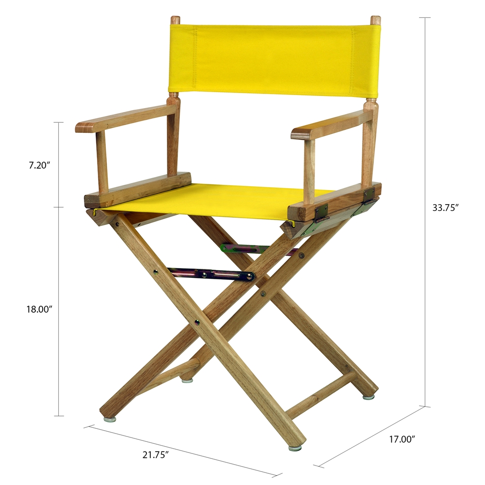 Discover a variety of uses for this classic-style director's chair. This portable director’s chair folds up and out easily, so you can move it from room to room or transport it for special occasions. It is an excellent solution for home and businesse Made of Solid Wood The chair can be folded in half for easy transport and storage, and provides great permanent and temporary seating for trade shows, outdoor events or any room in the house No assembly required, just fit in the cover and done! Dimension: 20¾"x16"x32"H, Seat-height appox. 18", Back cover size: 20"x6", Seat cover size: 18"x16"