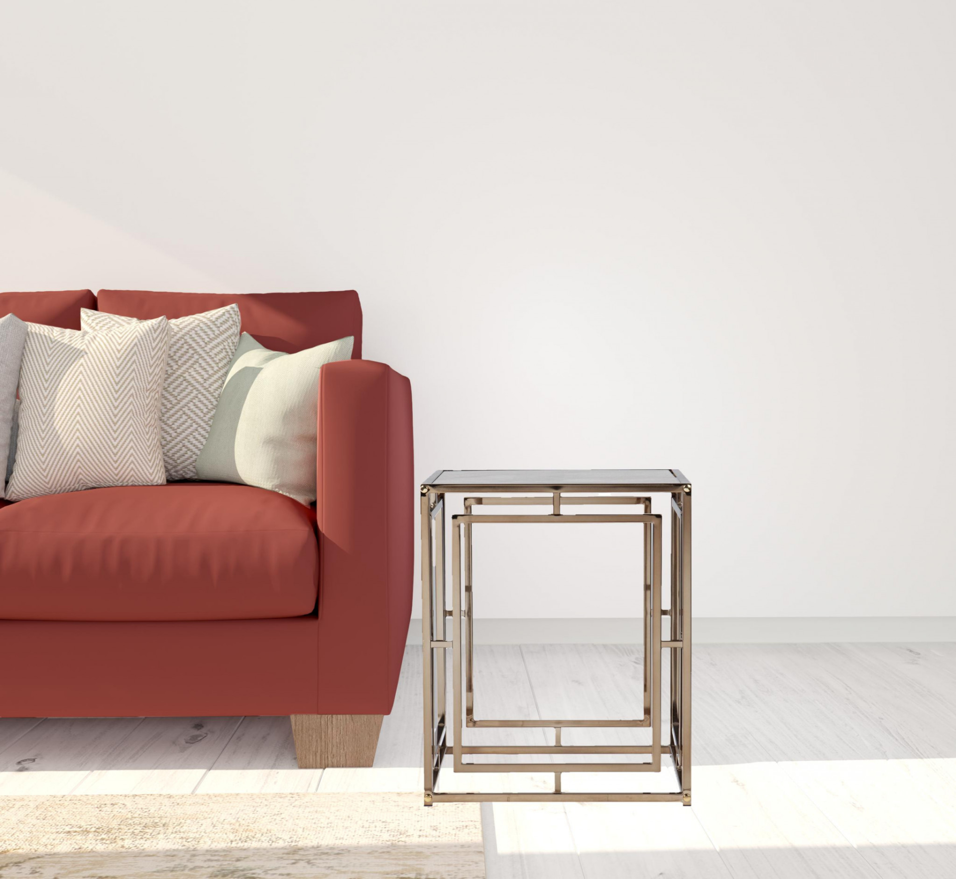 Distinctive in style, the 23" champagne glass and iron square end table radiates a versatile charm. Artfully crafted of metal, this beautiful design is chock-full of fine details. A sleek champagne monotone color gives this iron and glass table a fresh and updated look. Side tables are a great way to flank your sofa, use as an accent next to your favorite chair, or can even be used bedside. This versatile table is a great accent for almost any room. 23" H x 19.5" W x 19" D
