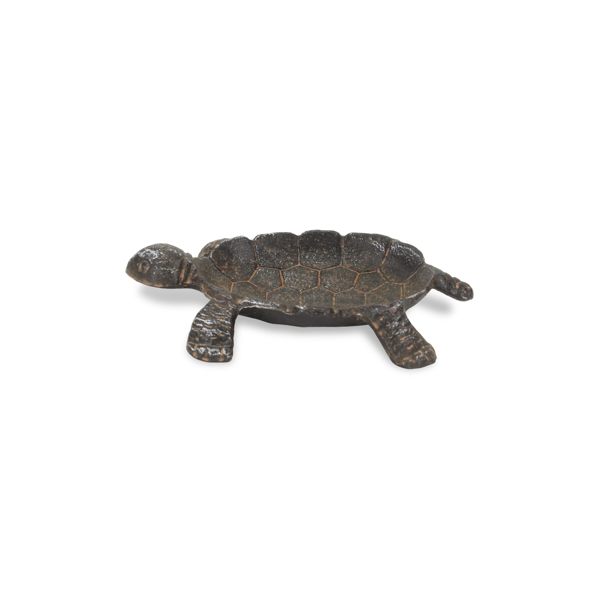 This 7" rustic finish black novelty turtle metal handmade tray will add a beautiful decorative accent to your decor. This fun turtle tray is crafted of metal with a curved center. Intended for decorative, non-food use only, it's the perfect decorative accent piece. 1.5" H x 7" W x 5" D