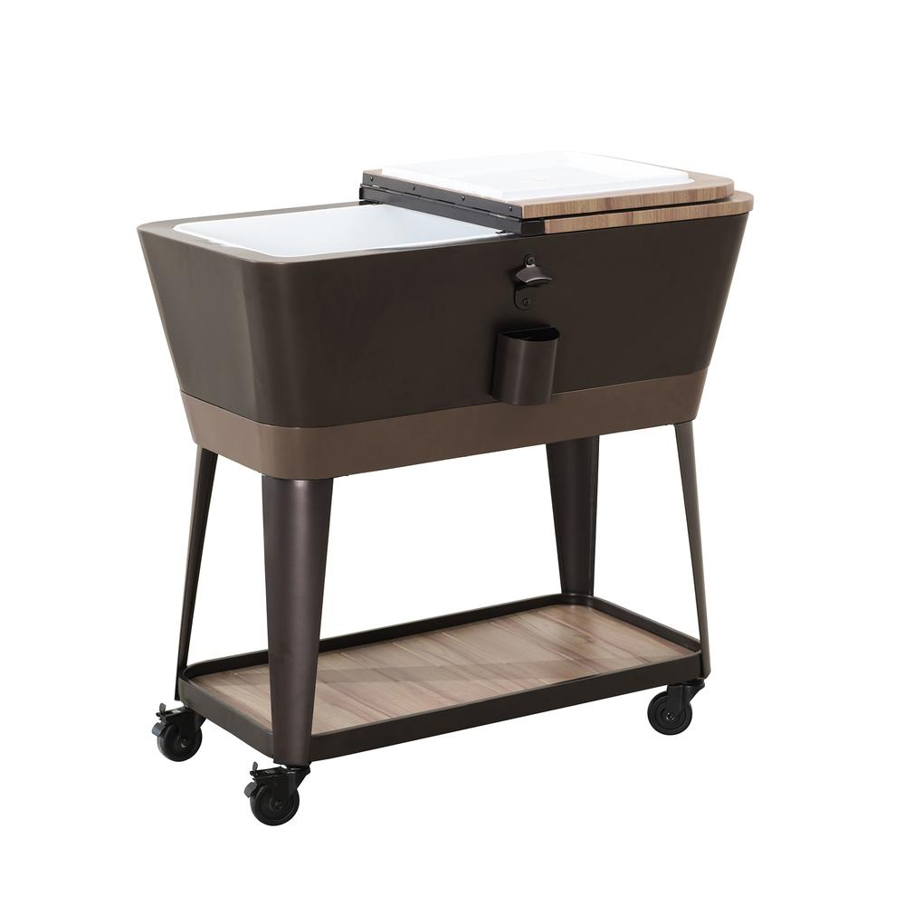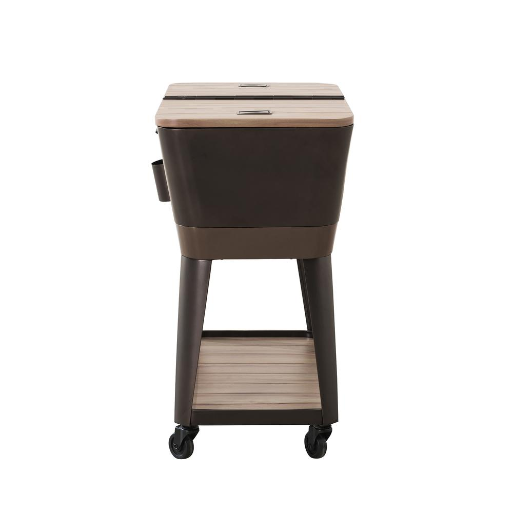 80-Quart Wood Grain Metal Rolling Ice Chest Cooler Cart with Storage Shelf