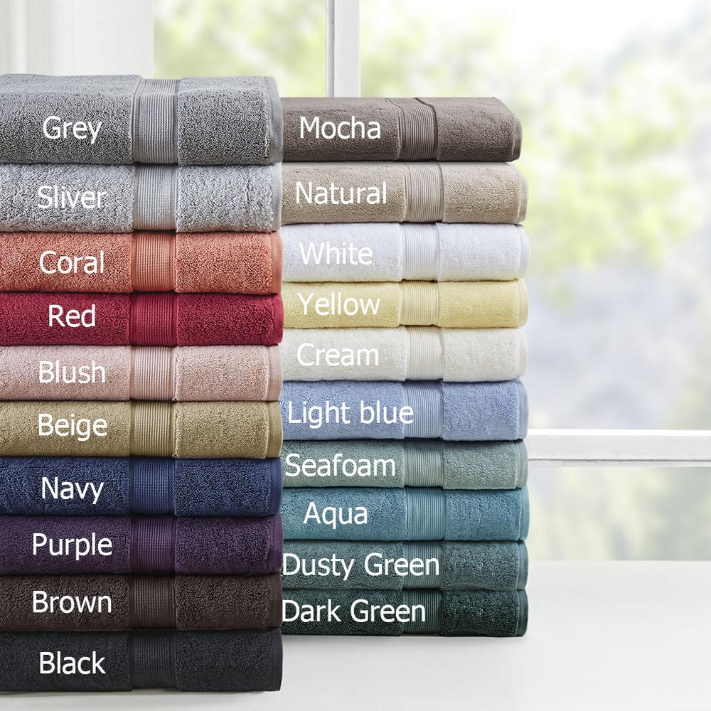 Provide a fresh update to your bathroom with our luxurious Madison Park Signature 800GSM Cotton 8PC Bath Towel Collection. This spa-like quality towel set is made of premium long staple cotton that is highly absorbent and creates a luxuriously soft feel, while the double ply loop construction increases thickness, absorbency, and ensures less lint. Each towel is finished with a SILVADUR™ antimicrobial treatment providing built in freshness protection, inhibiting growth of odor causing bacteria, and keeping linen newer, longer. Active for multiple washes, this treatment delivers long-lasting durable odor protection performance. In addition, these towels are also OEKO-TEX certified, meaning it includes no harmful substances or chemicals ensuring quality comfort and wellness. Finished with double-stitched side hems for long lasting durability, these towels are available in a variety of colors; to easily match your decor with a complimenting color or mix and match to create a distinctive style. Set includes: 2 generously oversized 30x54" bath towels, 2 standard 16x28" hand towels, and 4 standard 13x13" wash towels (hand and wash towels are 700gsm weight). Coordinate bath sheet set in selected colors, is available and sold separately.