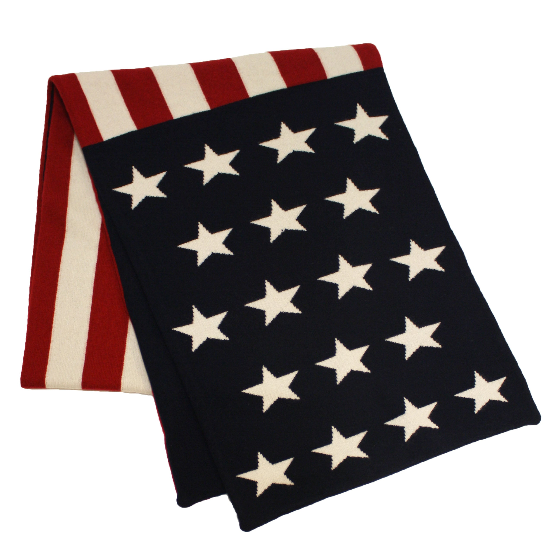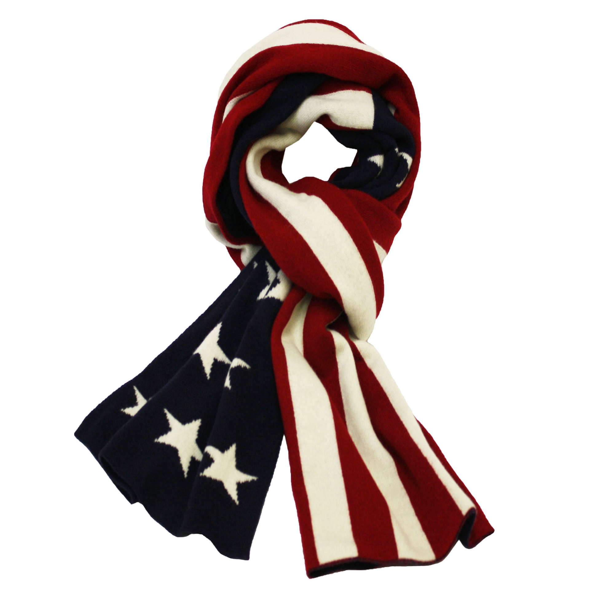 The American flag knitted Cashmere Scarf. Soft. Warm. 100% Soft Cashmere. This Luxury Scarf will wrap you in comfort and warmth. An accessory of true style.