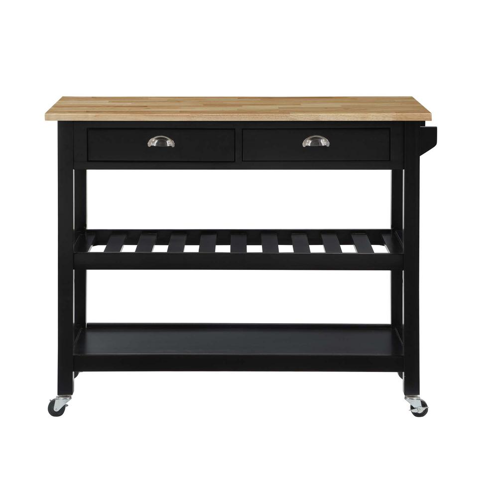American Heritage 3 Tier Butcher Block Kitchen Cart with Drawers, Butcher Block/Black