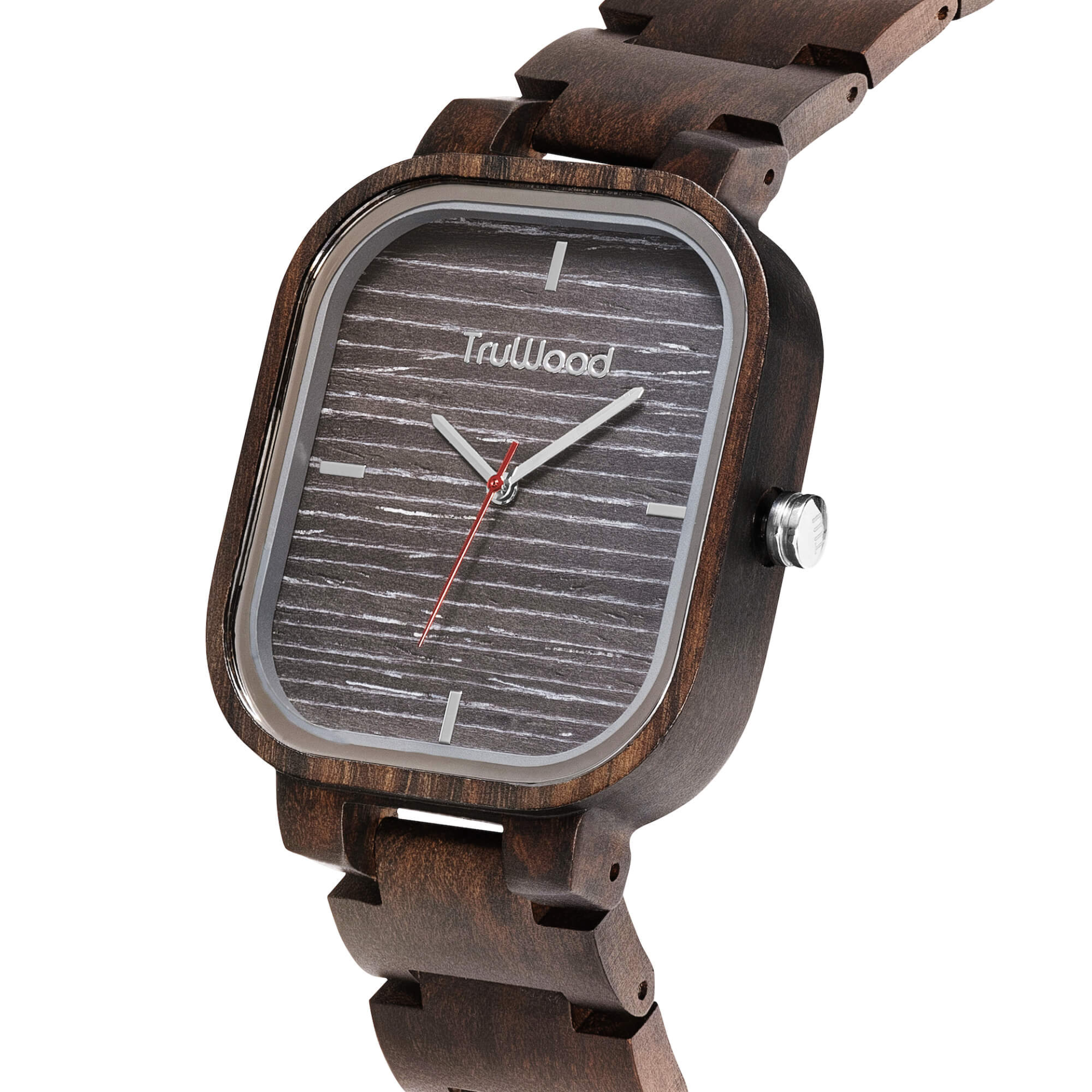 Our most requested collection to date, the highly anticipated Square watches are finally here. The TruWood Ascent features a sharp, defined look for the rugged journeyman with a clean-cut, dark wood dial with a pop of red on the seconds hand. Using our new single-link band, this timepiece has a smooth look around the wrist in a refreshing black sandalwood design. Step into a new light and don't be afraid to break boundaries once in while.