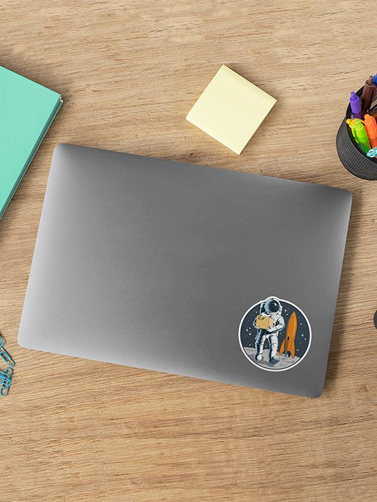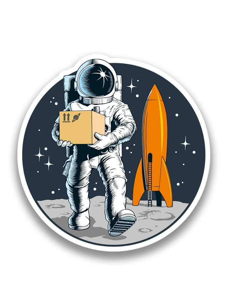 Share your love for space with this cool sticker of an astronaut delivering a package, and stay curious.. Design by ledokolua.